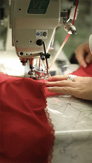 Le collezioni vengono poi confezionate in laboratori di lingerie che producono ogni pezzo a mano, uno per uno, in Francia, in Europa e in Vietnam, in base alle specificità tecniche e al know-how locale, presso laboratori certificati e auditati nel rispetto degli standard internazionali.